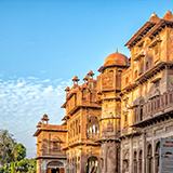 A Mighty Fort; The Great Jewel Of Bikaner; A Fort Never Conquered; The Fort With Mighty Turrets And Battlements; the only way to describe Junagarh Fort is in superlatives. Junagarh Fort was built by Raja Raj Singh and has beautiful palaces, temples and pavilions numbering thirty-seven in all. Built in red sandstone and marble, they are all richly decorated with mirror work, paintings and outstanding stone carvings; the architectural brilliance of the fort is worth seeing. A 986 meter long wall along the periphery stands guard.