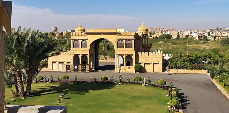 Overlooking the Golden Fort, Fort Rajwada is made of finely carved stone. Intricately carved balconies and walls present a beautiful picture. A swimming pool, tennis courts, billiards room, a book shop on the premises and a spa ensure that you have a completely relaxing holiday.